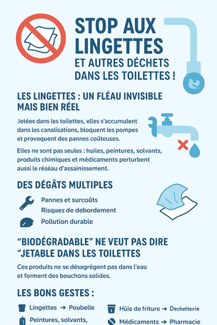 Les lingettes et autres déchets : un véritable fléau pour nos installations d’assainissement