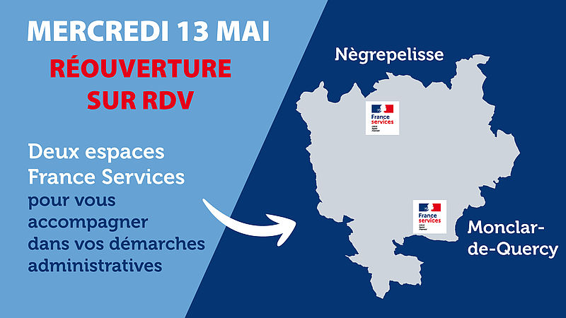 LES 2 ESPACES FRANCE SERVICES (NÈGREPELISSE ET MONCLAR-DE-QUERCY) ACCUEILLENT LE PUBLIC SUR RENDEZ-VOUS