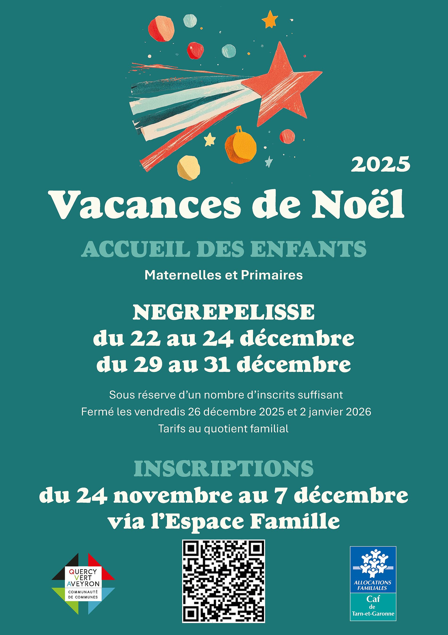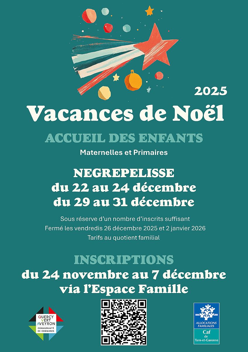 Vous avez jusqu'au 7 décembre pour inscrire vos enfants au centre de loisirs de Nègrepelisse (accueil regroupé), pendant les vacances de Noël.