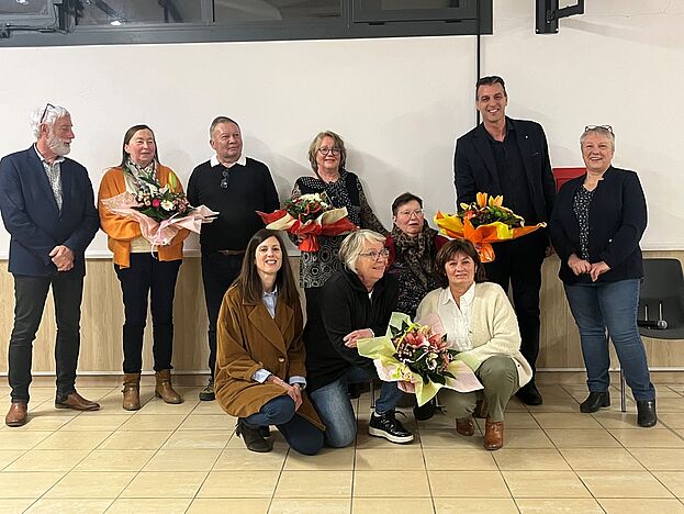 Le Président Tellier et les Vice Présidents M.Jannin (emploi développement économique), M.Massip (petite enfance enfance-jeunesse), Mme Soulié (culture) ont remis des médailles d’honneur à Sonia Ouvrier et Laure Martin, félicitées pour leur parcours professionnel au sein de la Fonction Publique Territoriale. Ont également été accueillies les retraitées, Mmes Martine Padié, Roseline Pisani, Marie-Ange Scheiff, Marie-Françoise Mourlhon congratulées pour leur sérieux et leur professionnalisme.