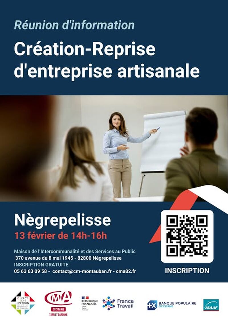 Réunion d’information à la création d’entreprise vendredi 13 février de 14h à 16h à Nègrepelisse dans les locaux de la Maison de l’Intercommunalité et des Services au Public.