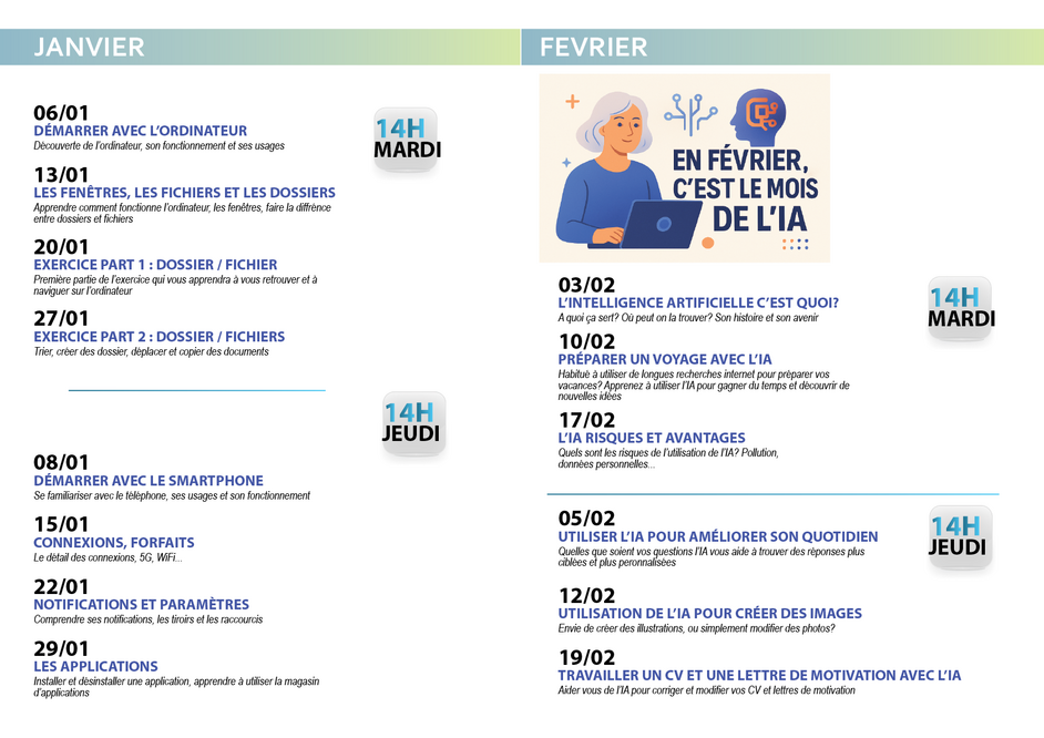 Ateliers Informatique sur Inscription